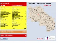 Nell'Area Vasta ci sono 121 nuovi casi (il giorno precedente 154) e di questi 65 sono residenti in provincia di Arezzo, 35 nel Senese, 21 nel Grossetano.