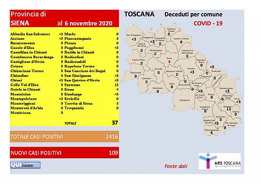 Nel senese sono, inoltre, 6 persone risultate debolmente positive al primo tampone e quindi sono in attesa del secondo per confermare o meno la positività.