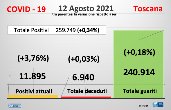 CORONAVIRUS giovedì 12 agosto 2021 ore 11:00