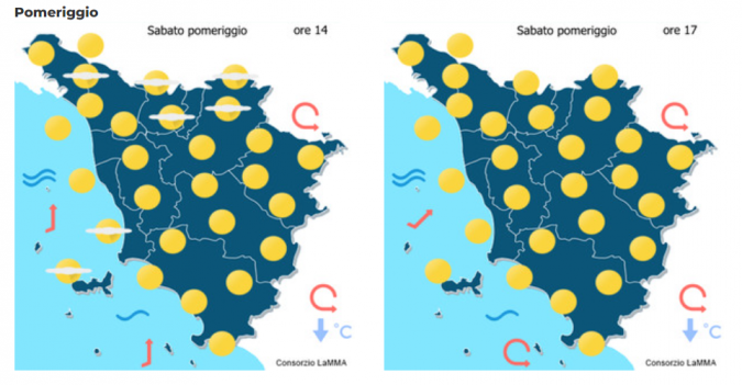 Con ordine: per tutto il fine settimana durante il giorno le temperature si manterranno nell'intorno dei 15 gradi, ma i sonni saranno stemperati in un pronunciato calo termico che sabato notte porterà a 1 grado la minima ad Arezzo, a 2 gradi quella di Firenze, Prato e Pistoia. In generale non si andrà oltre gli 8 gradi di Livorno.