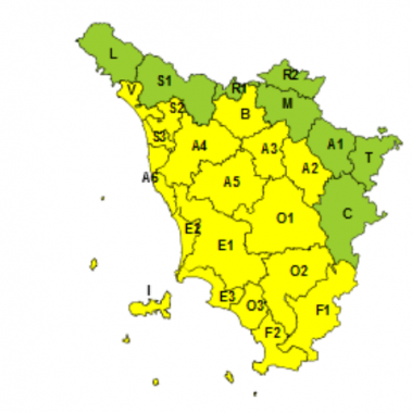 L'allerta emessa dalla sala operativa è per rischio idrogeologico e idraulico del reticolo minore e temporali forti e interesserà gran parte del territorio regionale, ad esclusione dell’arco appenninico dalla Lunigiana fino al Casentino.